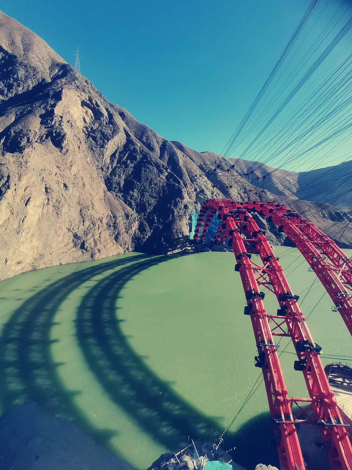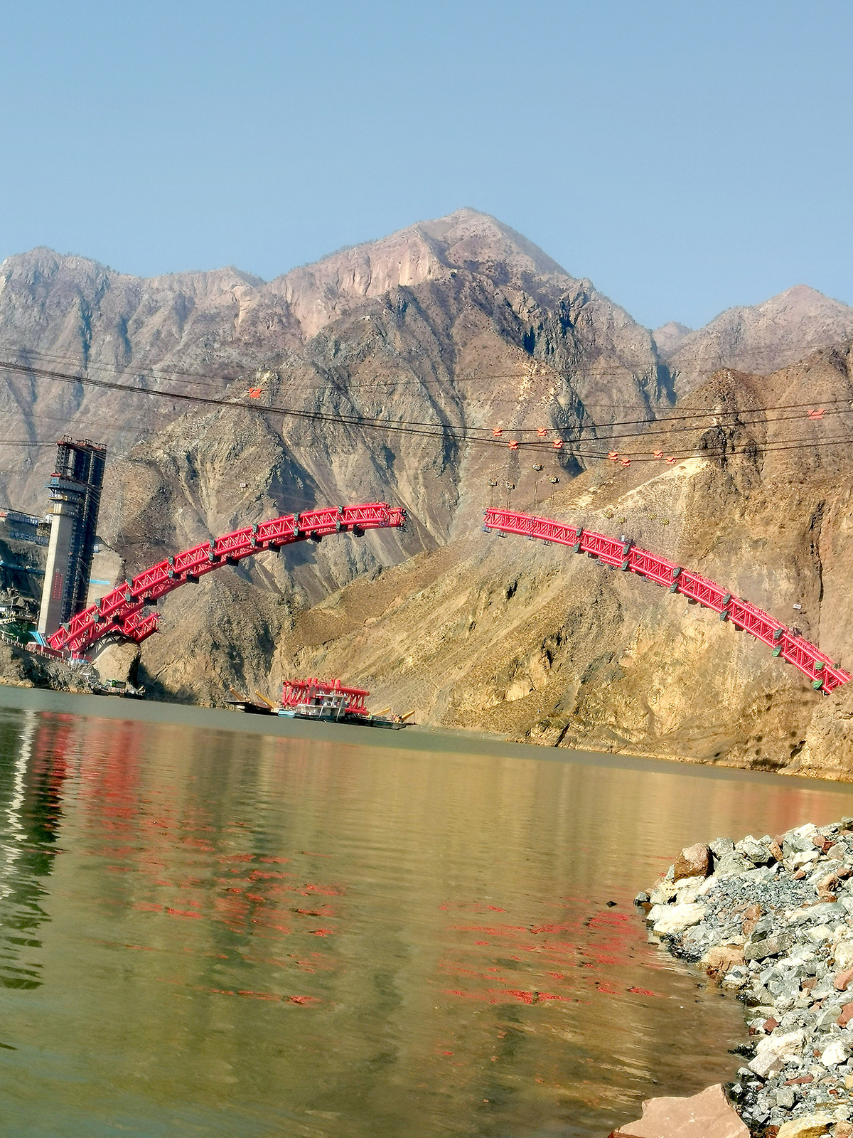 该桥为主跨265米的上承式钢管混凝土拱桥,全长492.72米的大桥,采用4×60t缆索起重机进行安装,2025年1月15日合龙。